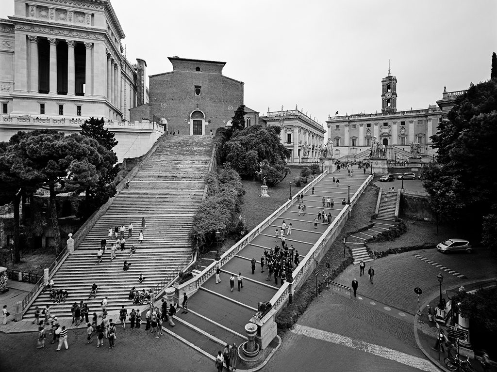 Basilico, ispirato dalle celebri pagine che la scrittrice Marguerite Yourcenar dedicò a Giambattista Piranesi agli inizi degli anni Sessanta del secolo scorso, ha ripercorso con la macchina fotografica tutti i luoghi delle vedute piranesiane restituendone la straordinaria modernità.