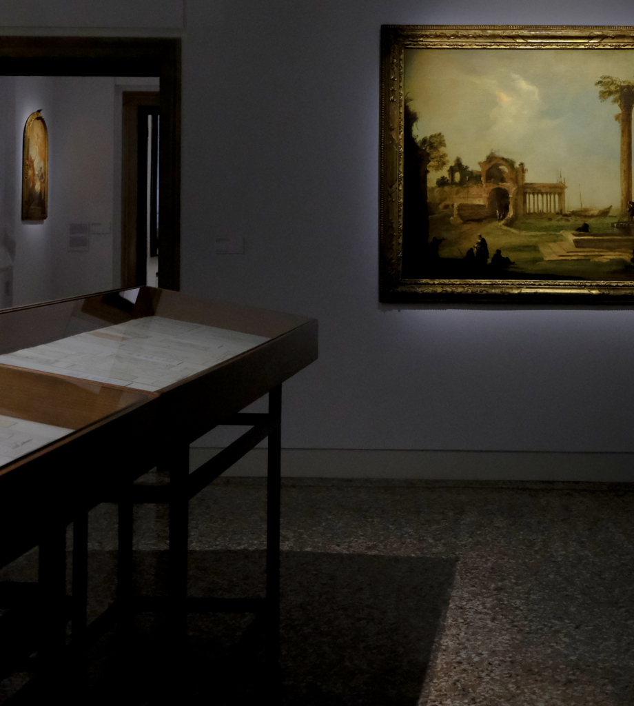 A impreziosire la mostra, gemma tra le gemme, un prestito d’eccezione dal Musée Jacquemart-André di Parigi: una magnifica gouache di Francesco Guardi raffigurante uno dei suoi bellissimi scorci veneziani di fantasia.